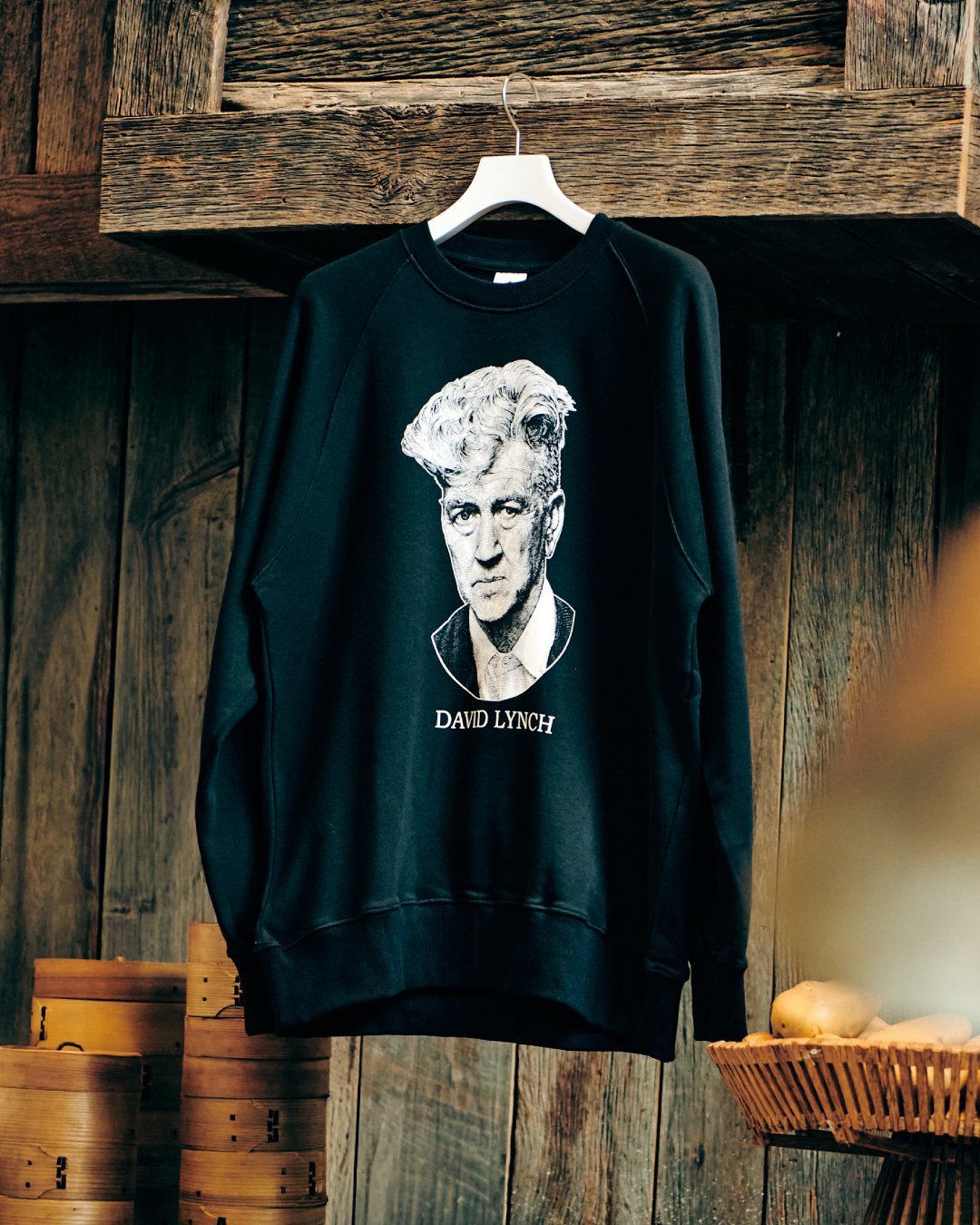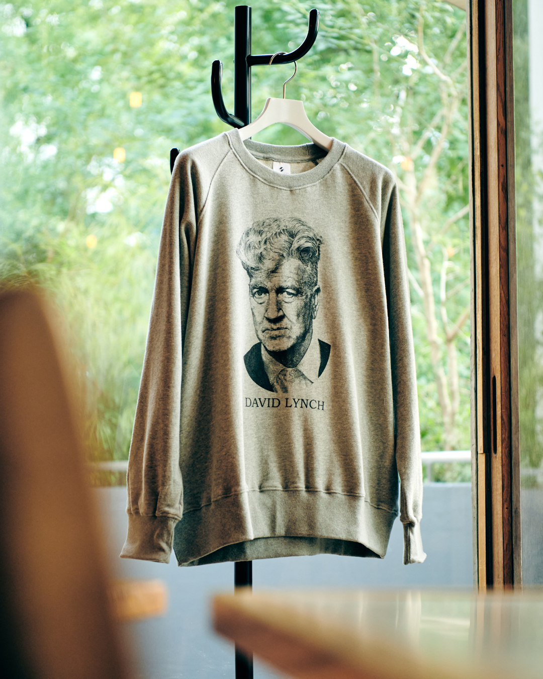 1946年アメリカ生まれの映画監督David Lynch(デイヴィッド・リンチ)のオリジナルポートレートイラストをフロントにプリントしたThe Salvages For bonjour records エクスクルーシブメモリアルスウェットが9/19(金)12時より予約販売中